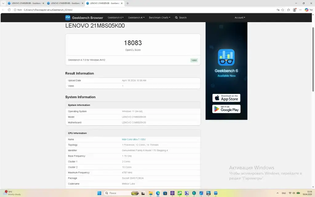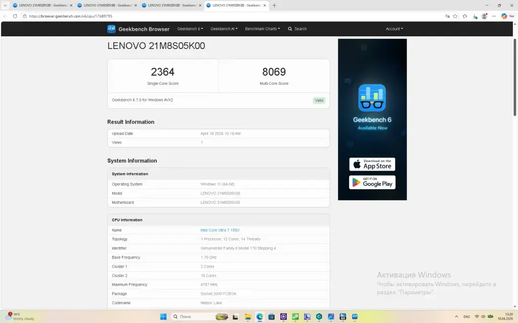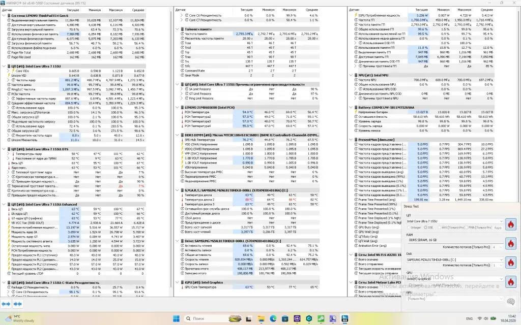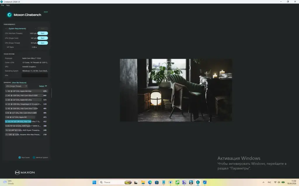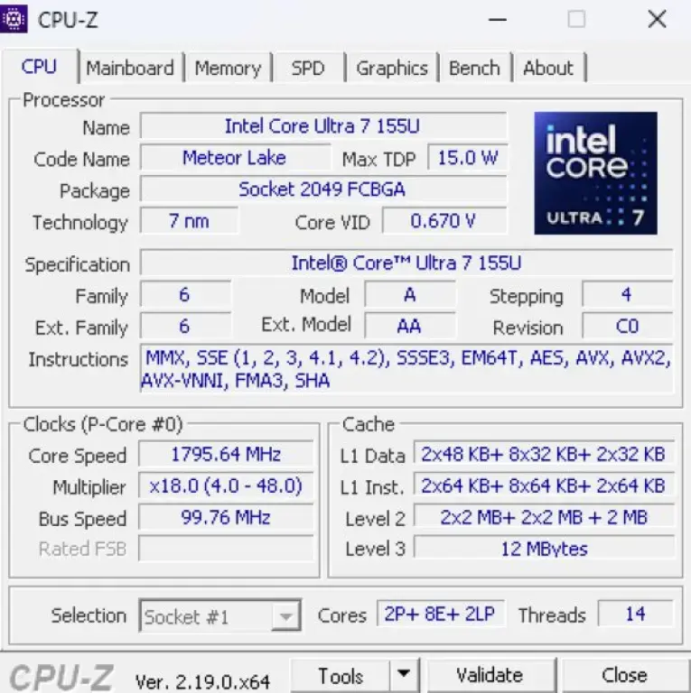 — Intel Core Ultra 7 155U, 12 ядер / 14 потоков, до 4.8 GHz