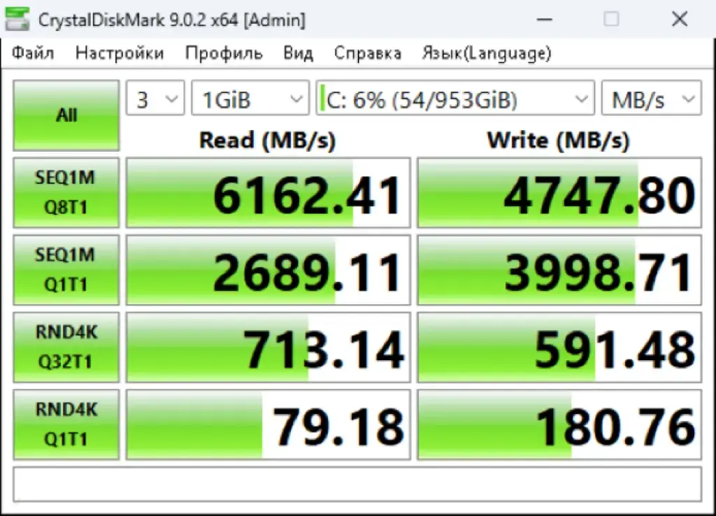 — SSD: до 6162 MB/s чтение и до 4748 MB/s запись